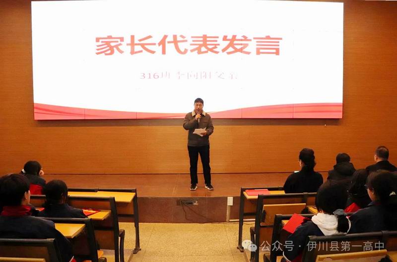 “感恩·春晖沐心”环节温情涌动。家长朗读家书,字字句句饱含深情;学生回信感恩,表达对父母、师长的诚挚谢意。大屏幕上滚动播放的家长寄语与学生成长相册,更是让在场许多人热泪盈眶。三(16)班李向阳父亲的发言,进一步传递了家庭的期望与支持。