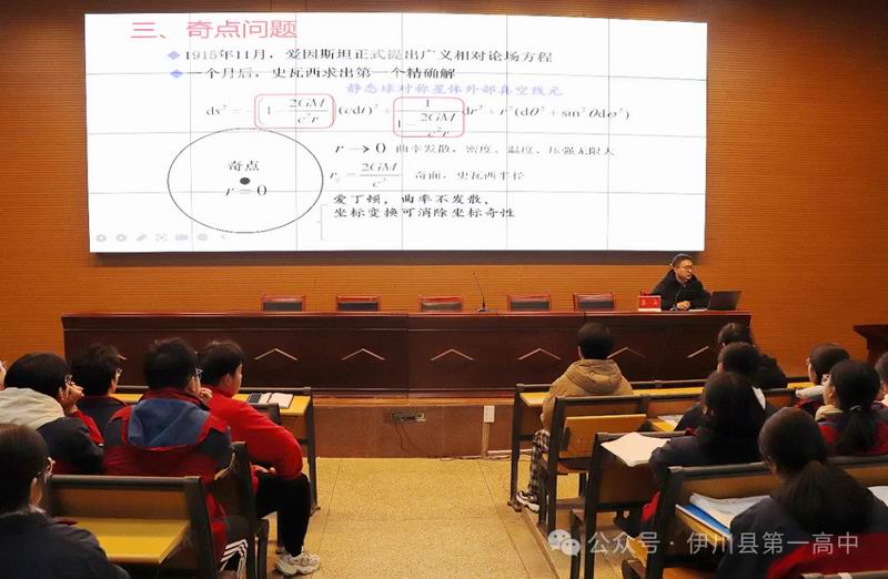秦教授作为深耕广义相对论与量子引力领域的学者,拥有“中国物理学会科普演讲团专家”“河南省教学技能竞赛一等奖得主”等多重身份的学者,他不仅在科研前沿深耕,更擅长用接地气的方式拆解硬核知识,斩获全国高等学校物理基础课程讲课大赛河南赛区特等奖、中南赛区一等奖,这次来到伊川一高的讲台,正是带着“把宇宙级的浪漫讲给少年听”。