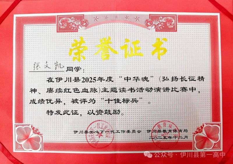 此次佳绩的取得彰显了伊川一高在推进书香校园建设、落实立德树人根本任务方面取得的卓越成效。未来,我校将持续推进爱国主义主题教育活动,鼓励学子在书香浸润中传承中华文脉。愿全体一高学子以榜样为力量,将长征精神融入基因,让红色血脉代代相传,在成长路上勇毅前行,涵养家国情怀,勇担时代使命,在新征程中书写壮丽的青春篇章。